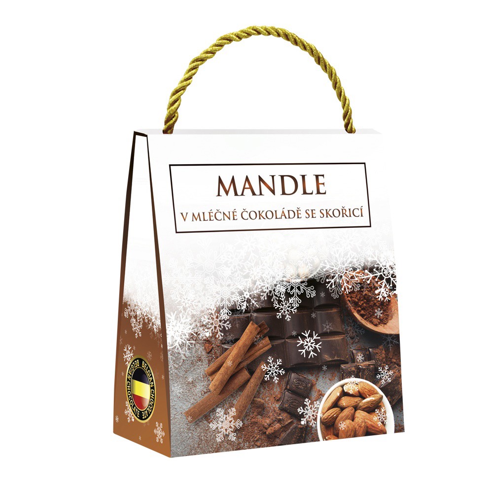Mandle v mléčné čokoládě se skořicí, 200 g. 137 × 65 × 155 mm
