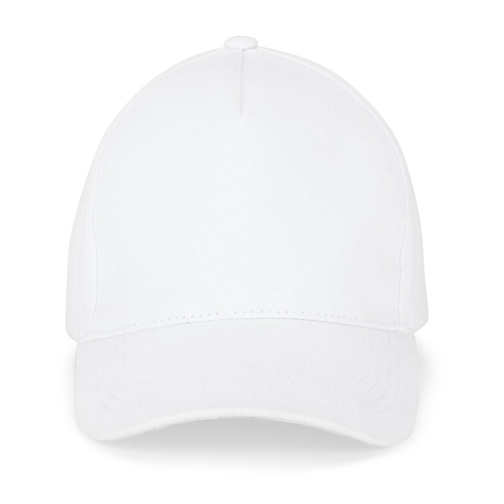 Čepice ze 100% kartáčované bavlny s 5 panely, větracími otvory (260 g/m²) a nastavitelným kovovým zapínáním. K dispozici v široké škále barev. Velikost: 590 mm