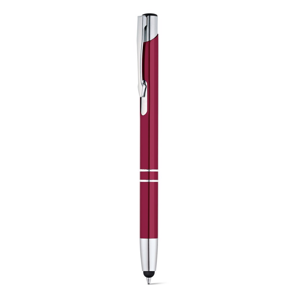 Hliníkové kuličkové pero s barevným tělem a gumovou povrchovou úpravou. Díky dotykovému hrotu se stává sofistikovaným dárkem vhodným pro nové technologie. K dispozici v široké škále barev. Modrý inkoust. ø10 x 138 mm