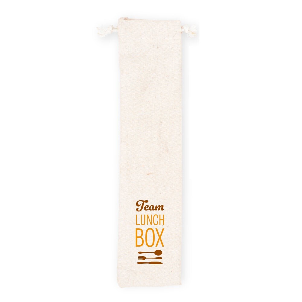 Sada příborů: lžíce, vidlička a nůž z nerezové oceli s dřevěnými rukojeťmi. Dodáváno v bavlněném sáčku. Tašky: 250 x 60 mm