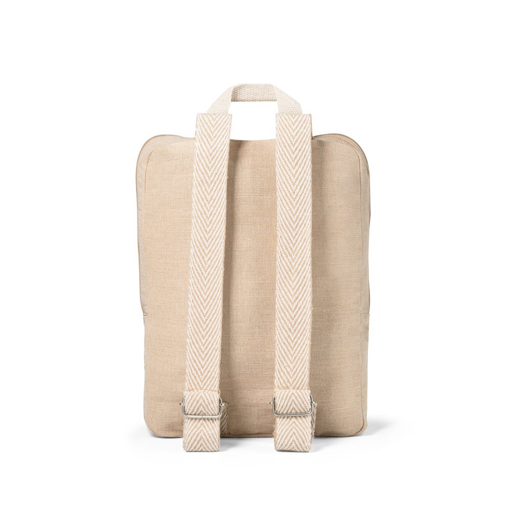 Batoh z juco (275 g/m²) s hlavní přihrádkou a přední kapsou na zip. Bavlněná rukojeť a nastavitelné ramenní popruhy z dvoubarevné bavlny. Kapacita je až 7 l. 270 x 350 x 70 mm