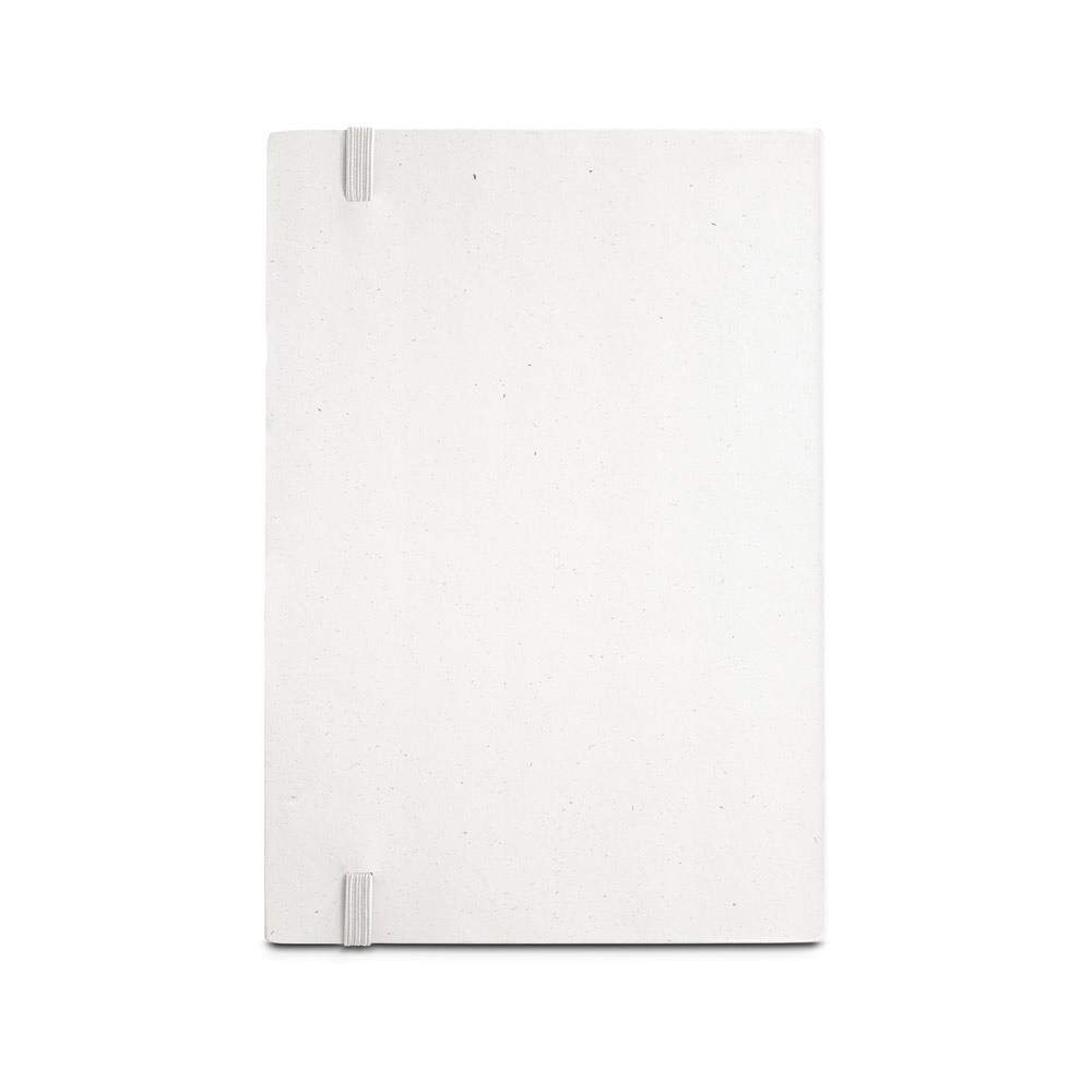Zápisník ve formátu A5 s pevným obalem vyrobeným z recyklovaných krabic od mléka, který pomáhá opětovně využívat lepenku a hliník obsažené v krabicích. Má 160 stran ze 100% recyklovaného linkovaného papíru v barvě slonové kosti, oddělovací proužek a gumička. 145 x 210 mm