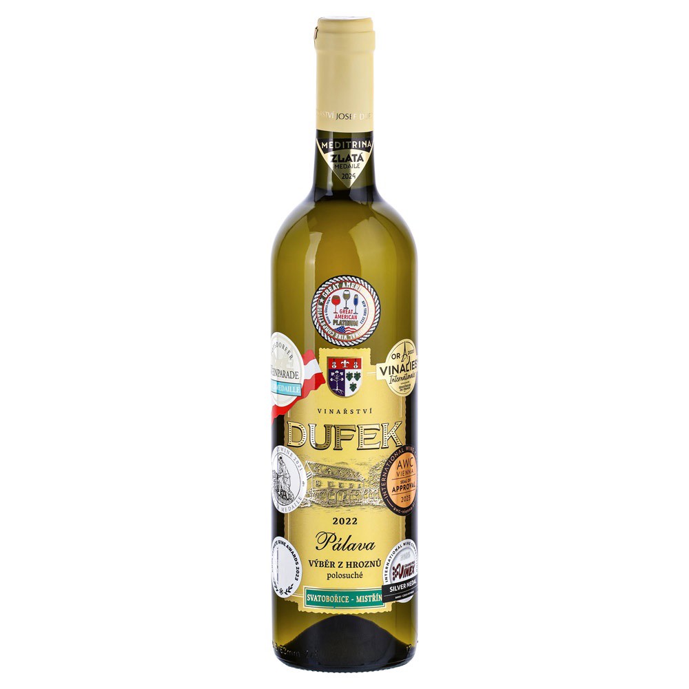 Bílé víno s přívlastkem výběr z hroznů, polosuché, 750 ml. ø 70 × 320 mm