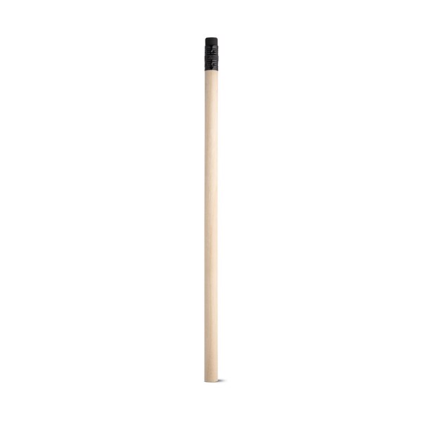 Dřevená tužka s gumou. Neořezaná. Stupeň tvrdosti: HB. ø7 x 190 mm
