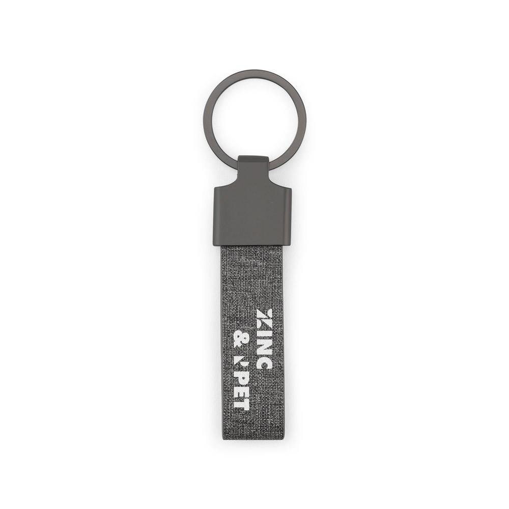Obdélníková klíčenka z kovu a rPET (30 % rPET). Dodáváno v obálce z kraftového papíru. Celkem: 115 x 32 x 7 mm | Taška: 135 x 55 mm