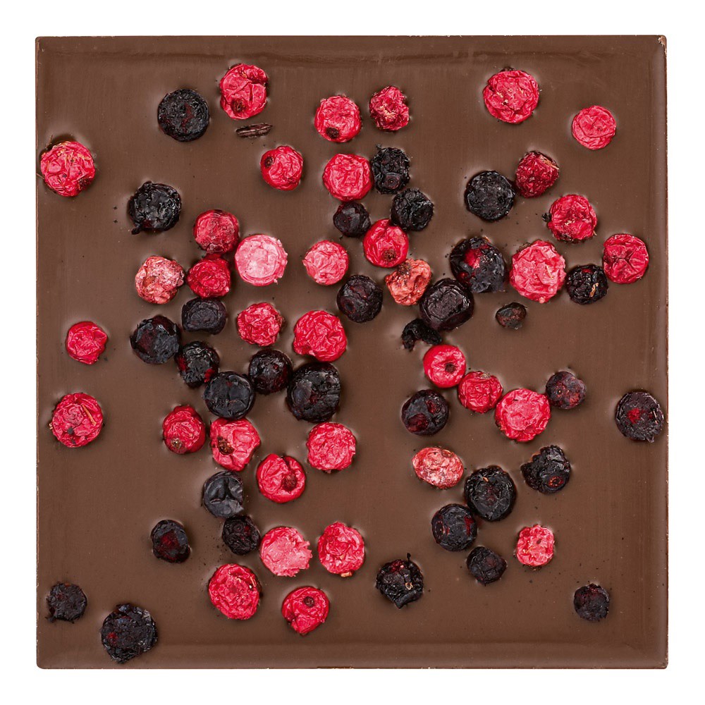 Mléčná čokoláda s posypem ze sušeného ovoce, 80 g.102: Višeň a malina105: Rybíz a borůvka 160 × 160 mm