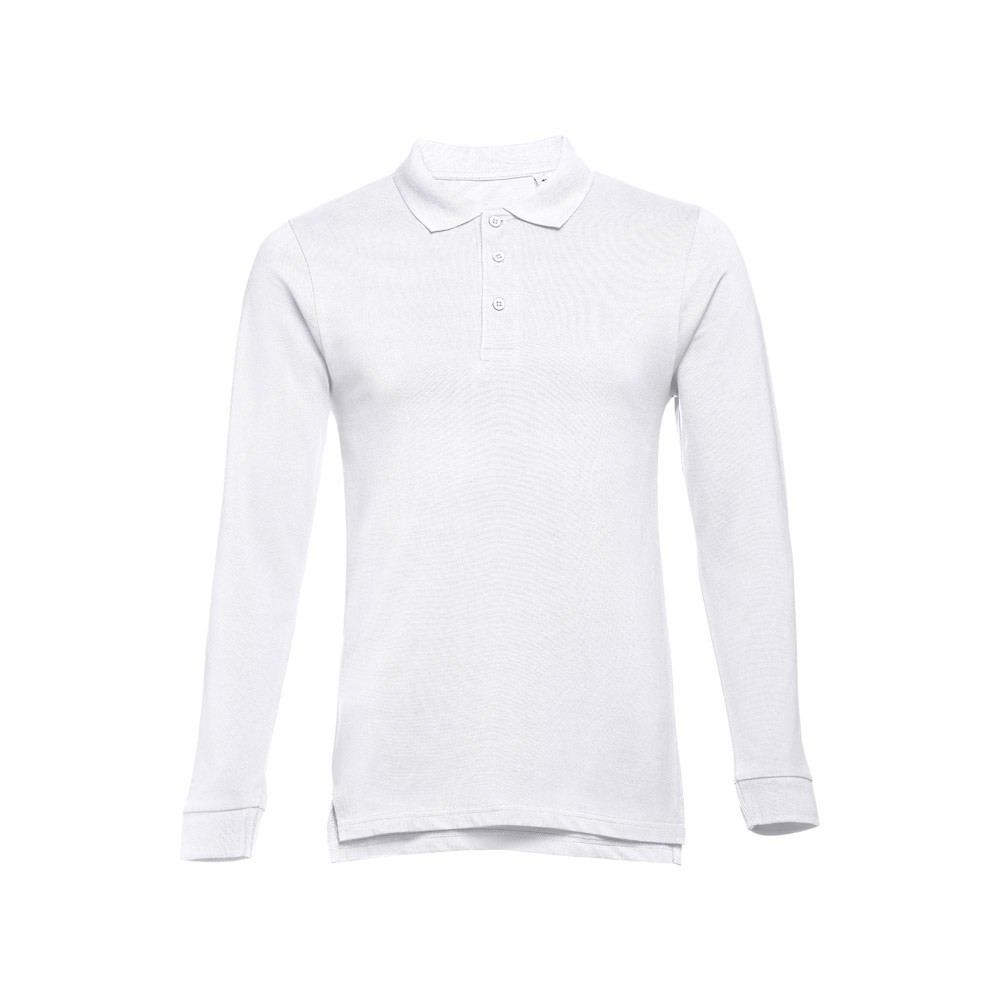 THC BERN WH II. Men's long-sleeved 100% cotton piqué polo shirt with removable label