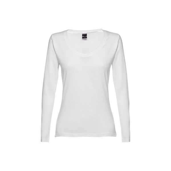 Dámské žerzejové tričko s dlouhým rukávem ze 100% bavlny (150 g/m²). Žerzejový lem výstřihu. Dvojité prošití na rukávech a spodním lemu. Šité po stranách. Velikosti: S, M, L, XL, XXL