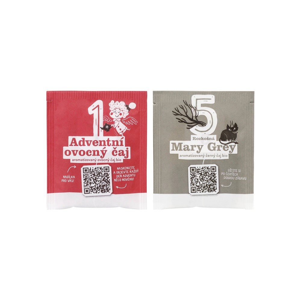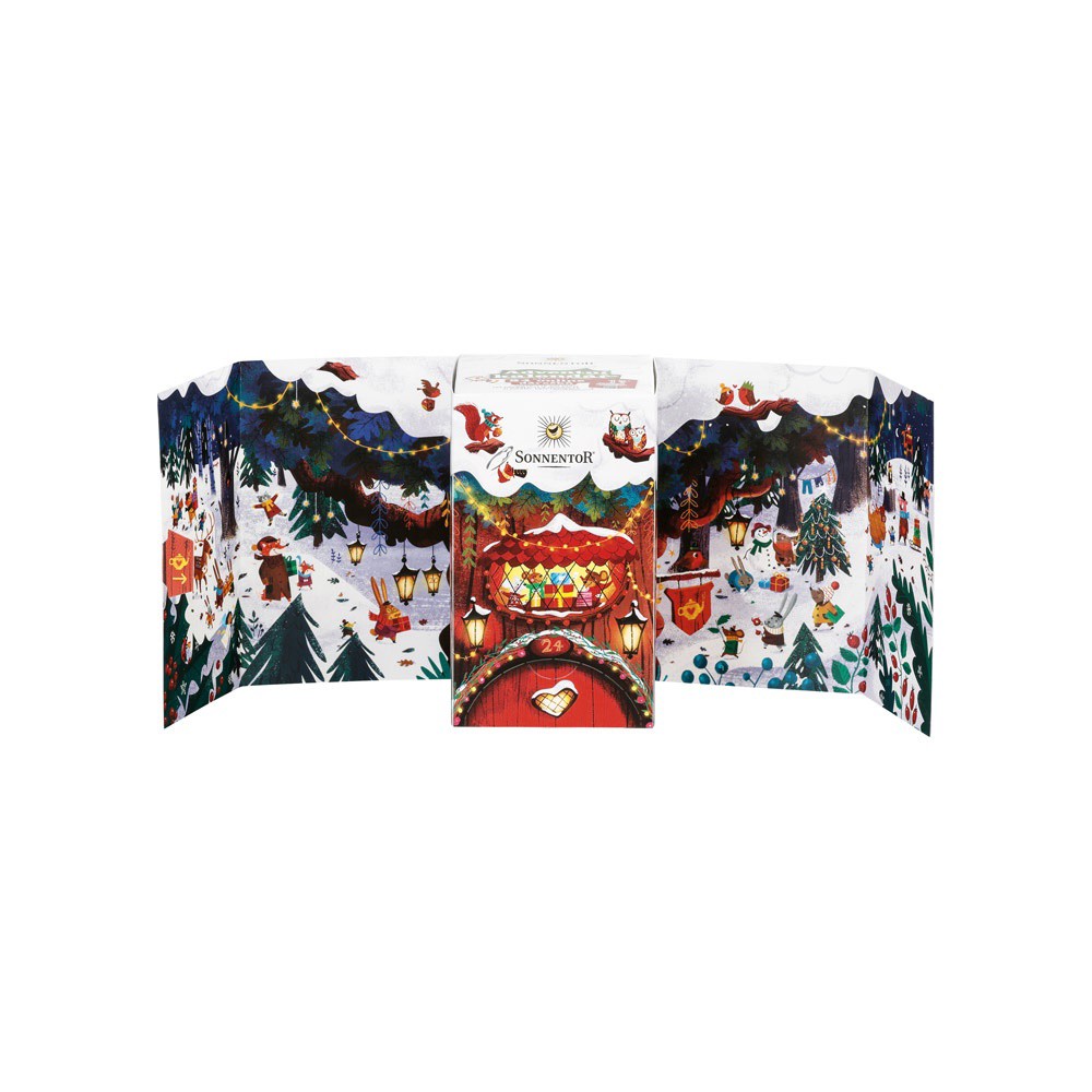 Adventní kalendář Sonnentor - sada jednotlivě balených bio čajů různých příchutí s básničkami, 24 sáčků. 70 × 120 × 80 mm